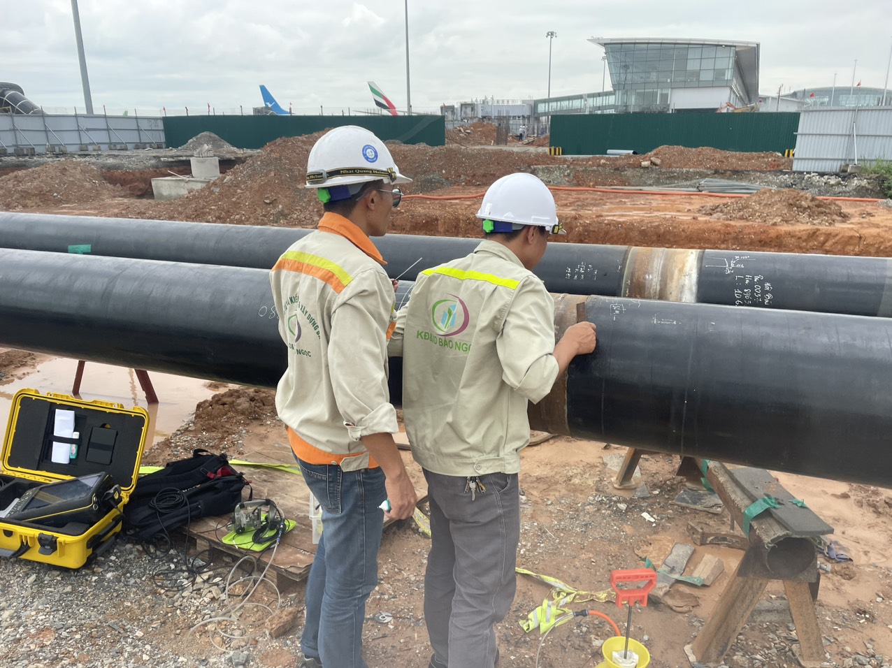Dự án Cảng Hàng Không Quốc Tế Nội Bài là dự án trọng điểm mà công ty TNHH Kiểm Định và Xây Dựng Bảo Ngọc đang tham gia thực hiện. Đây là một dự án lớn với sự đầu tư lên tới 1200 tỉ đồng cùng với nhiều đơn vị tham gia như VIMECO, PCC, ,WEC… Đơn vị Bảo Ngọc đã và đang tham gia vào dự án với các hạng mục của kiểm tra không phá hủy như kiểm tra siêu âm mảng pha đa biến từ (PAUT), kiểm tra bằng phương pháp siêu âm (UT), kiểm tra chụp phim mối hàn (RT), kiểm tra bằng phương pháp từ tính ( MT), kiểm tra bằng phương pháp thẩm thấu (PT), kiểm tra Holiday Test… Ngoài ra đơn vị còn giám sát đánh giá tay nghề và cấp chứng nhận thợ hàn tại dự án. Hiện nay dự án đang được triển khai hết sức khẩn trương và gấp rút.