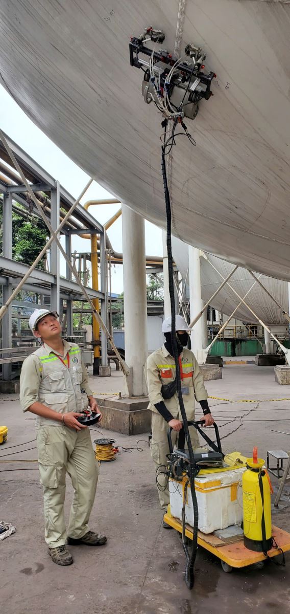 Hiện nay, BẢO NGỌC đang là một trong những đơn vị tiên phong sử dụng công nghệ cao vào công tác kiểm tra không phá hủy NDT. Tiêu biểu là việc sử dụng Robot công nghệ tiên tiến để tiến hành kiểm tra tại các mặt phẳng khó tiếp cận. Robot có thể mang đầu dò, phục vụ hữu ích cho công việc kiểm tra trực quan (VT), kiểm tra siêu âm mảng pha (PAUT) và siêu âm nhiễu xạ (TOFD),….nhằm tối ưu được các chi phí về nhân công, giàn giáo cũng như đảm bảo sự an toàn