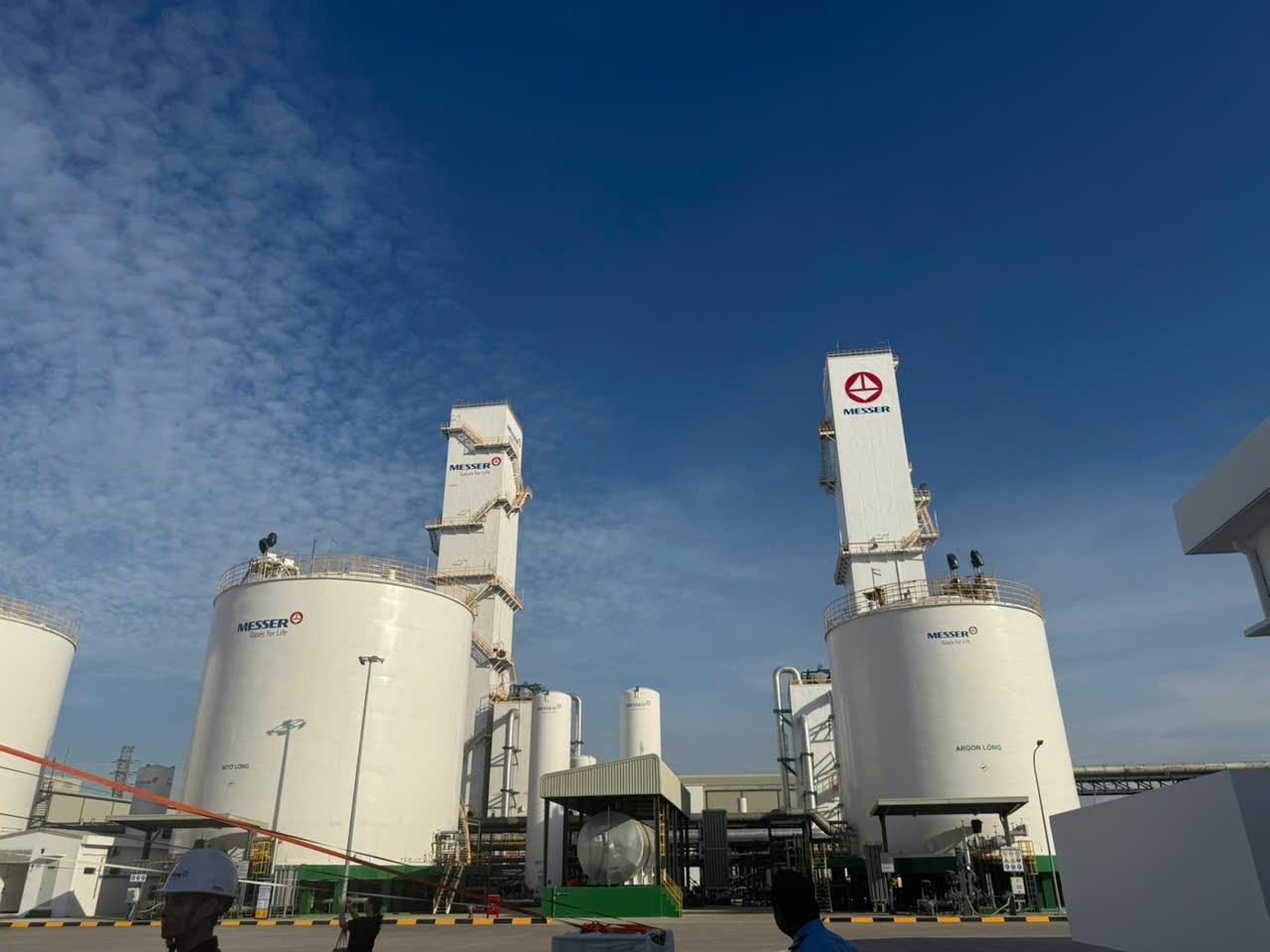 Hình 1. Hình ảnh bồn chứa khí và tháp tách khí tại Nhà máy Messer Quảng Ngãi